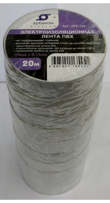 Лента изоляционная  ПВХ 20М*19ММ*0,13ММ БЕЛАЯ, самозатухающая (1рол./уп.,10рол./уп.) АРX-122_W оптом