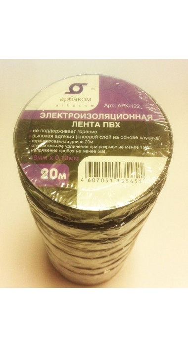 Лента изоляционная  ПВХ 20М*19ММ*0,13ММ ЧЕРНАЯ, самозатухающая (1рол./уп.,10рол./уп.) АРX-122_Bk оптом