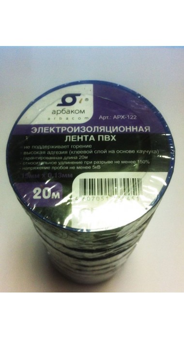 Лента изоляционная  ПВХ 20М*19ММ*0,13ММ СИНЯЯ, самозатухающая (1рол./уп.,10рол./уп.) АРX-122_Bl оптом