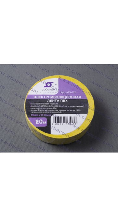 Лента изоляционная ПВХ 20М*19ММ*0,13ММ ЖЕЛТАЯ, самозатухающая (1рол./уп.,10рол./уп.) АРX-122_Y оптом