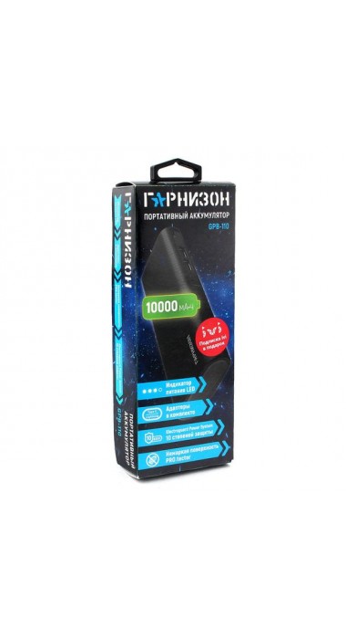 Портативный аккумулятор(Power bank) Гарнизон GPB-110, 10000мА/ч, 2 USB, 2.4A, черный оптом